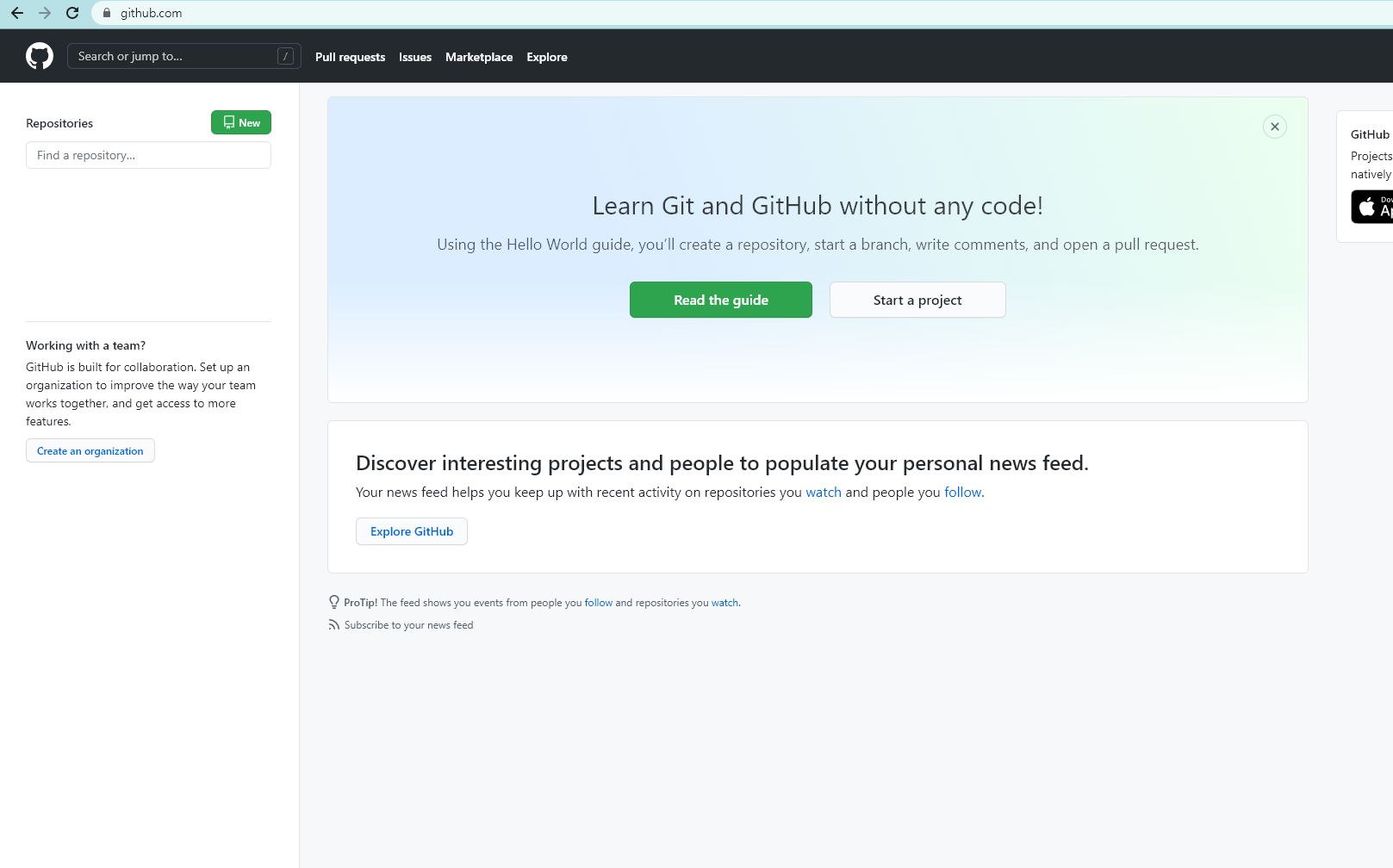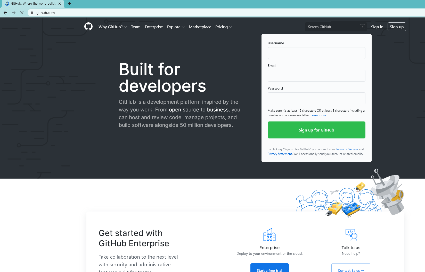 구글에 깃허브라고 검색을 해서 아래의 페이지에 접속을 하자.