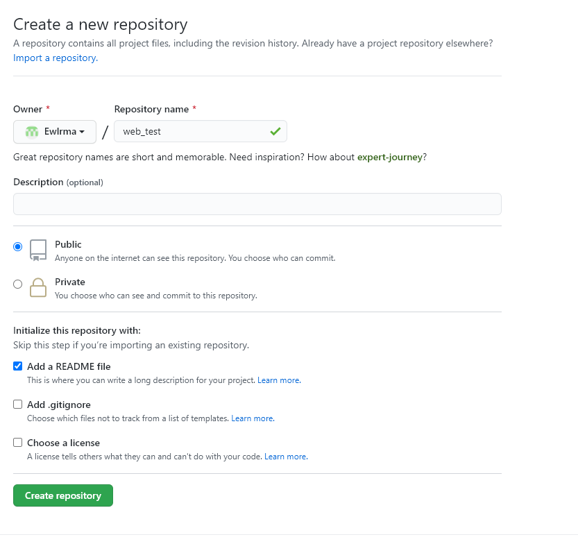 "add README file" 을 체크 후에 create repository 버튼을 누른다.