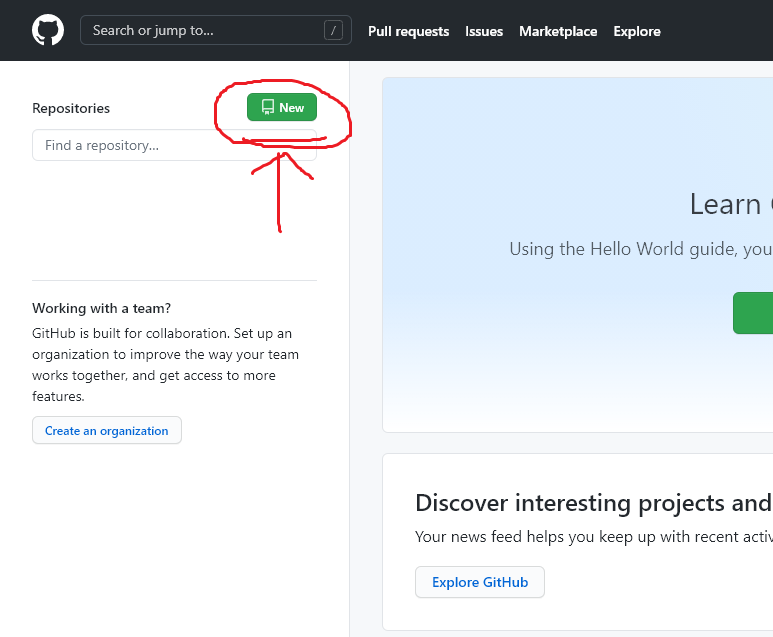왼쪽 상단에 있는 New 라는 버튼을 눌러서 새로운 Repository를 생성하자.