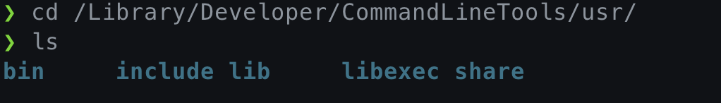 개인의 환경에 따라서 차이는 있을 수 있겠지만, bin의 이전 경로, 즉 InstalledDir에서 Libray/Developer/CommandLineToos/usr/ 로 이동한다.