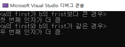cout << "<a의 first와 b의 frist가 같은 경우>" << endl;